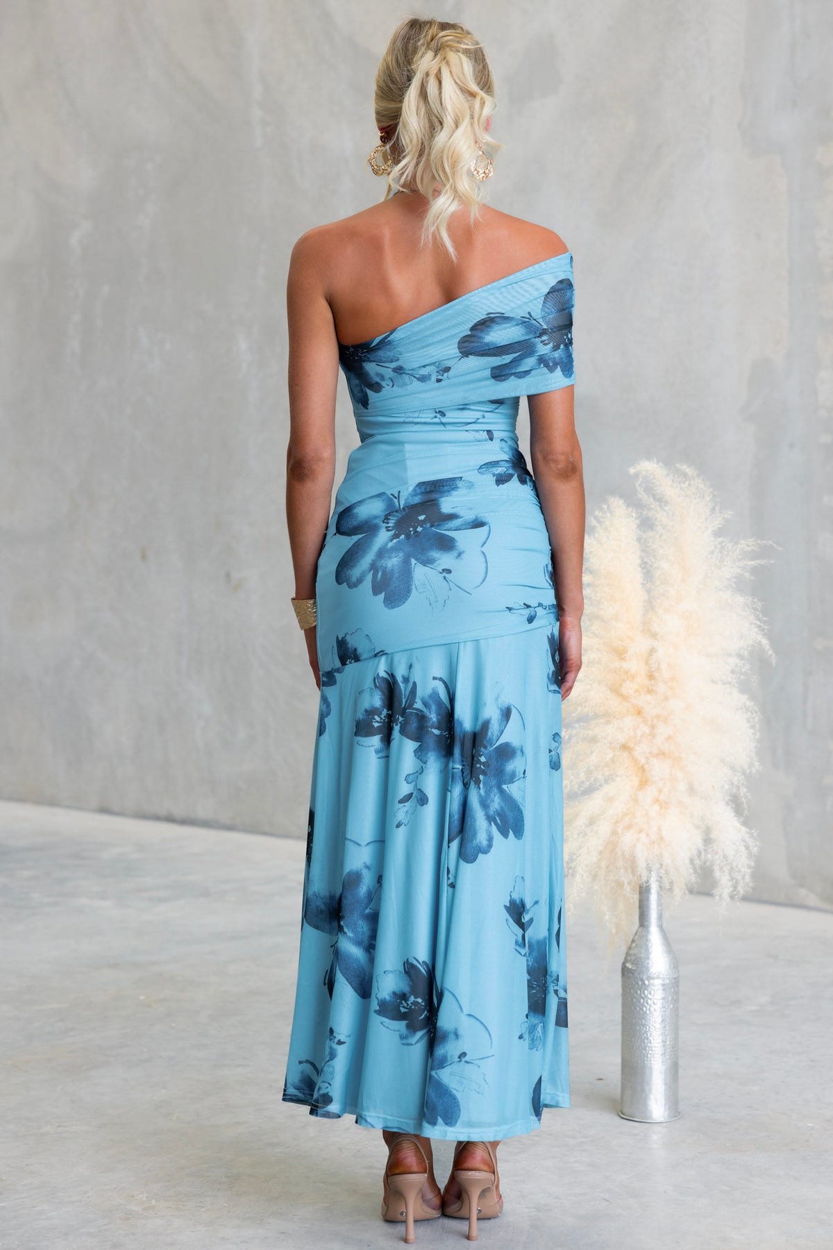 • One-shoulder neckline with anti-slip