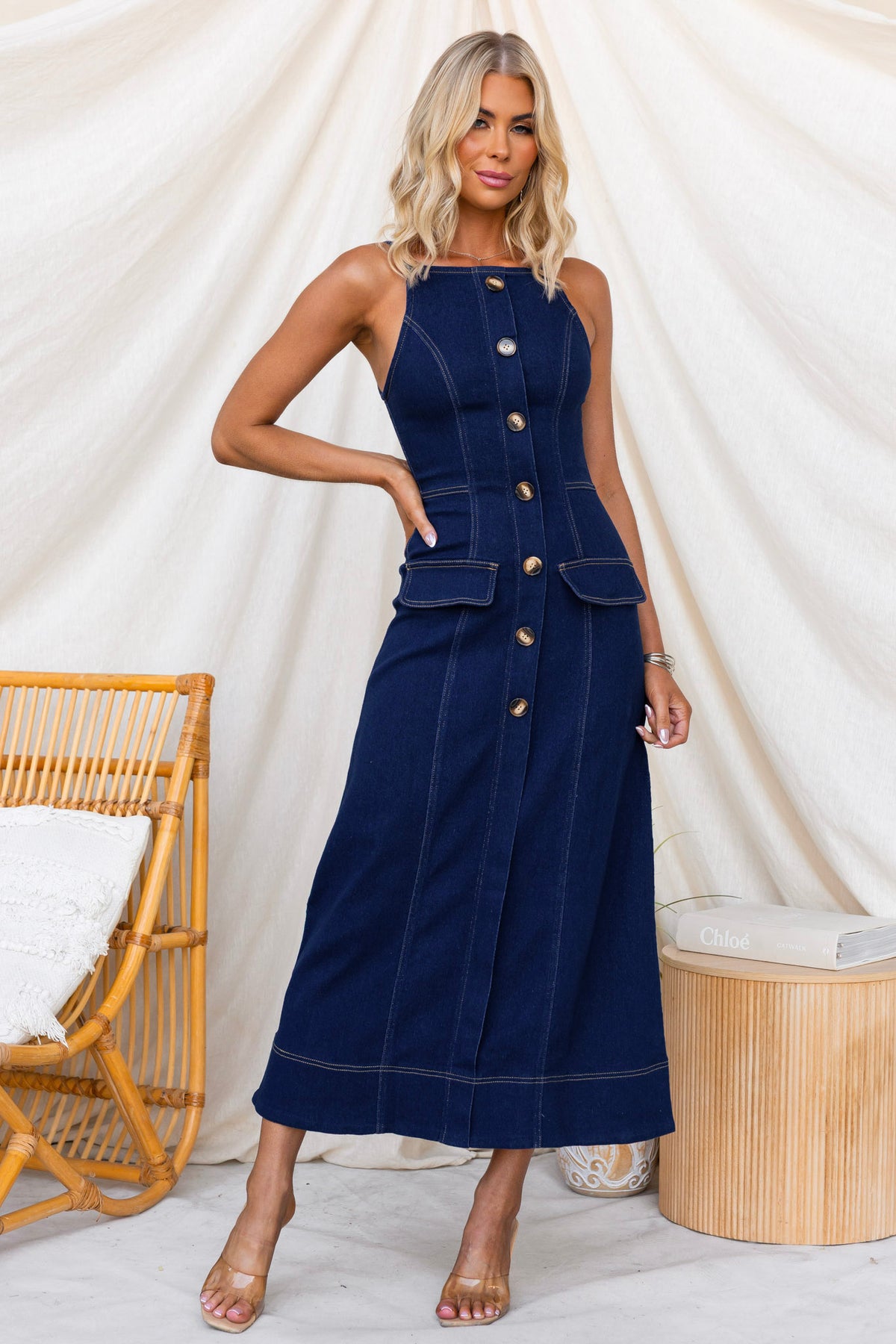 • Denim midi dress
