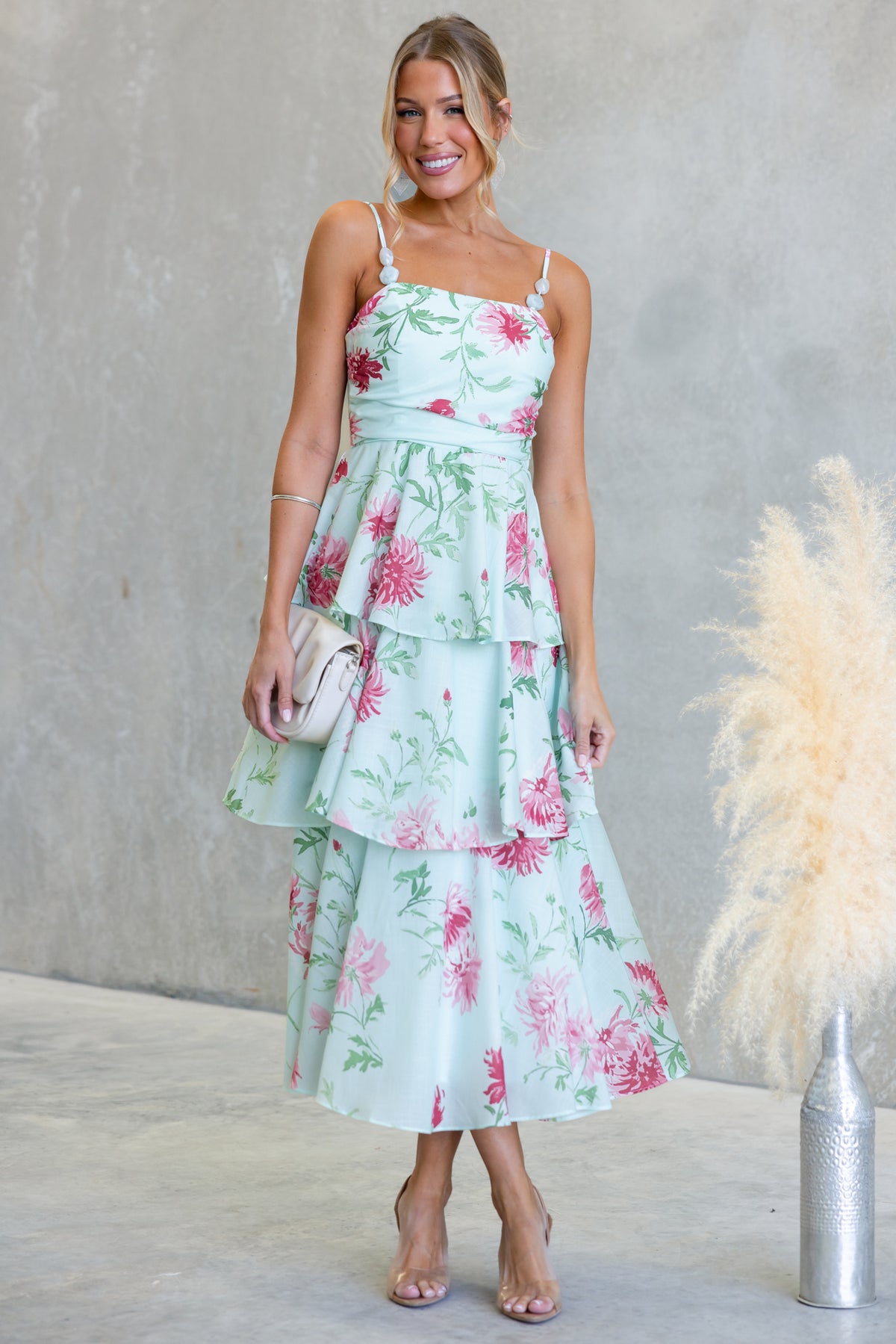 • Adjustable straps with bead detail