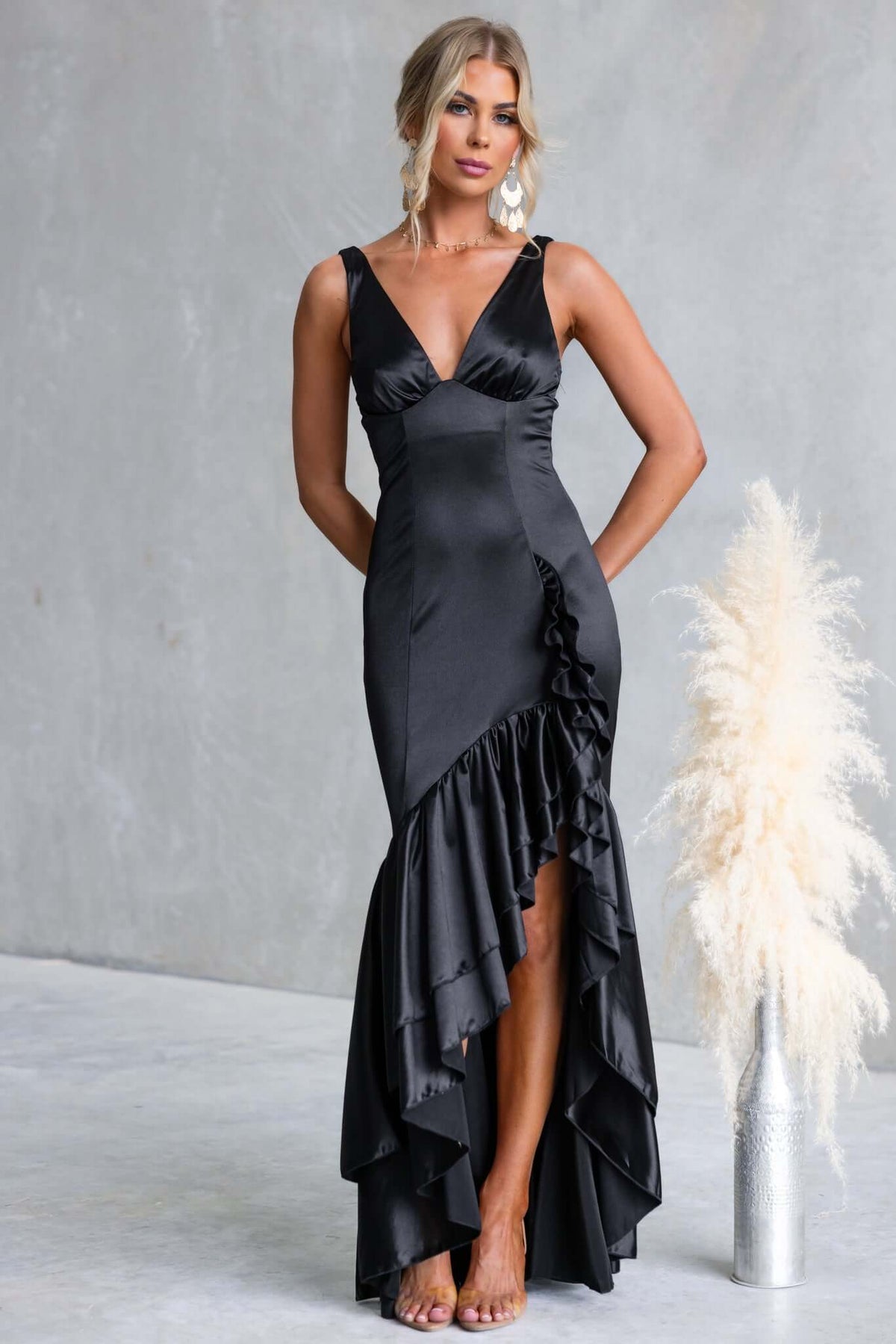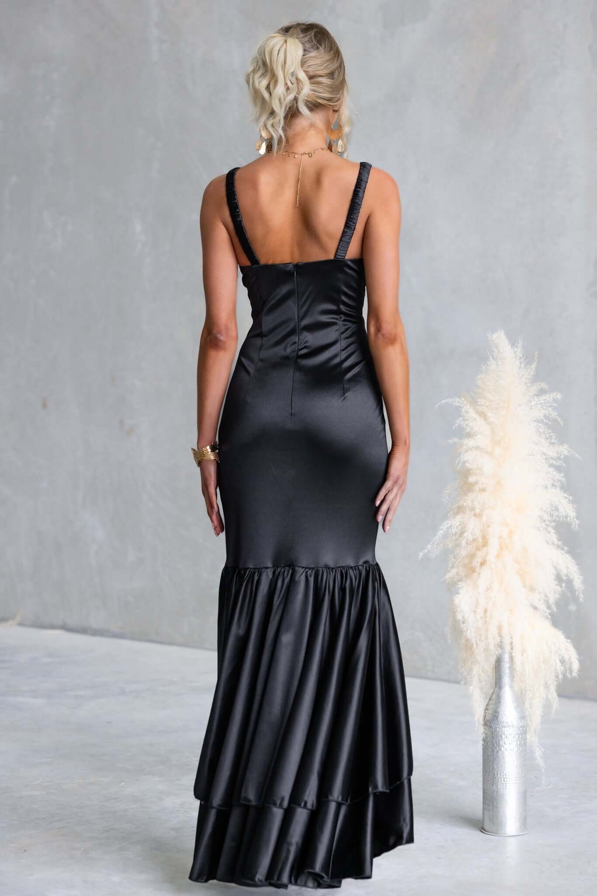• Black satin maxi dress