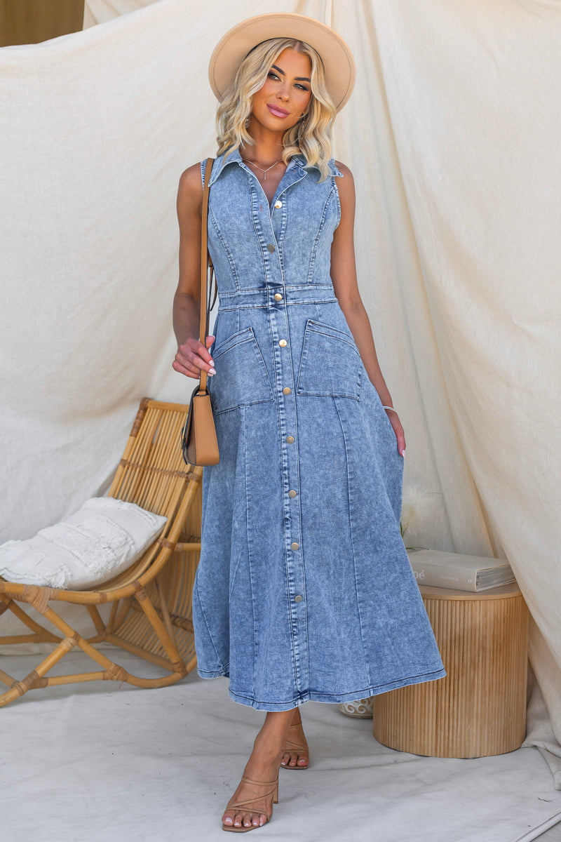 Rustic Denim Maxi Dress