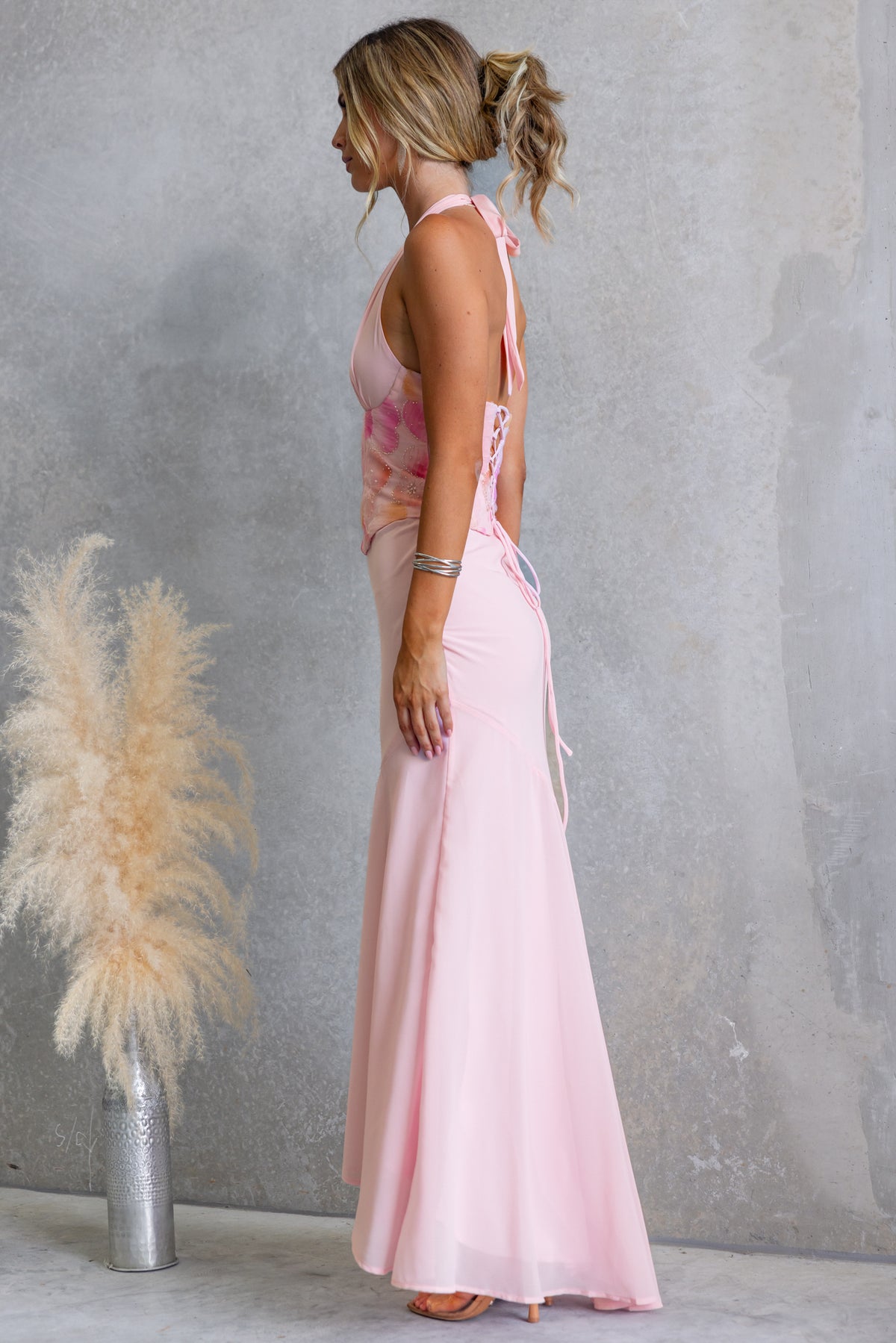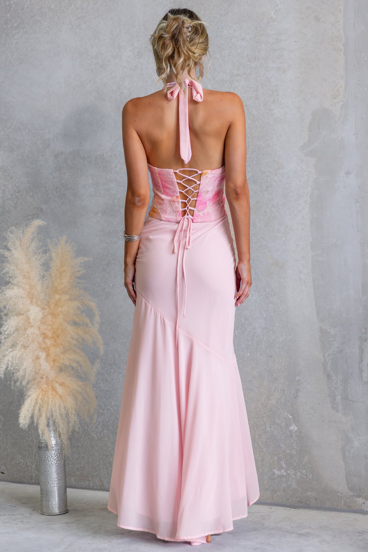 • Lace-up tie & boning at back