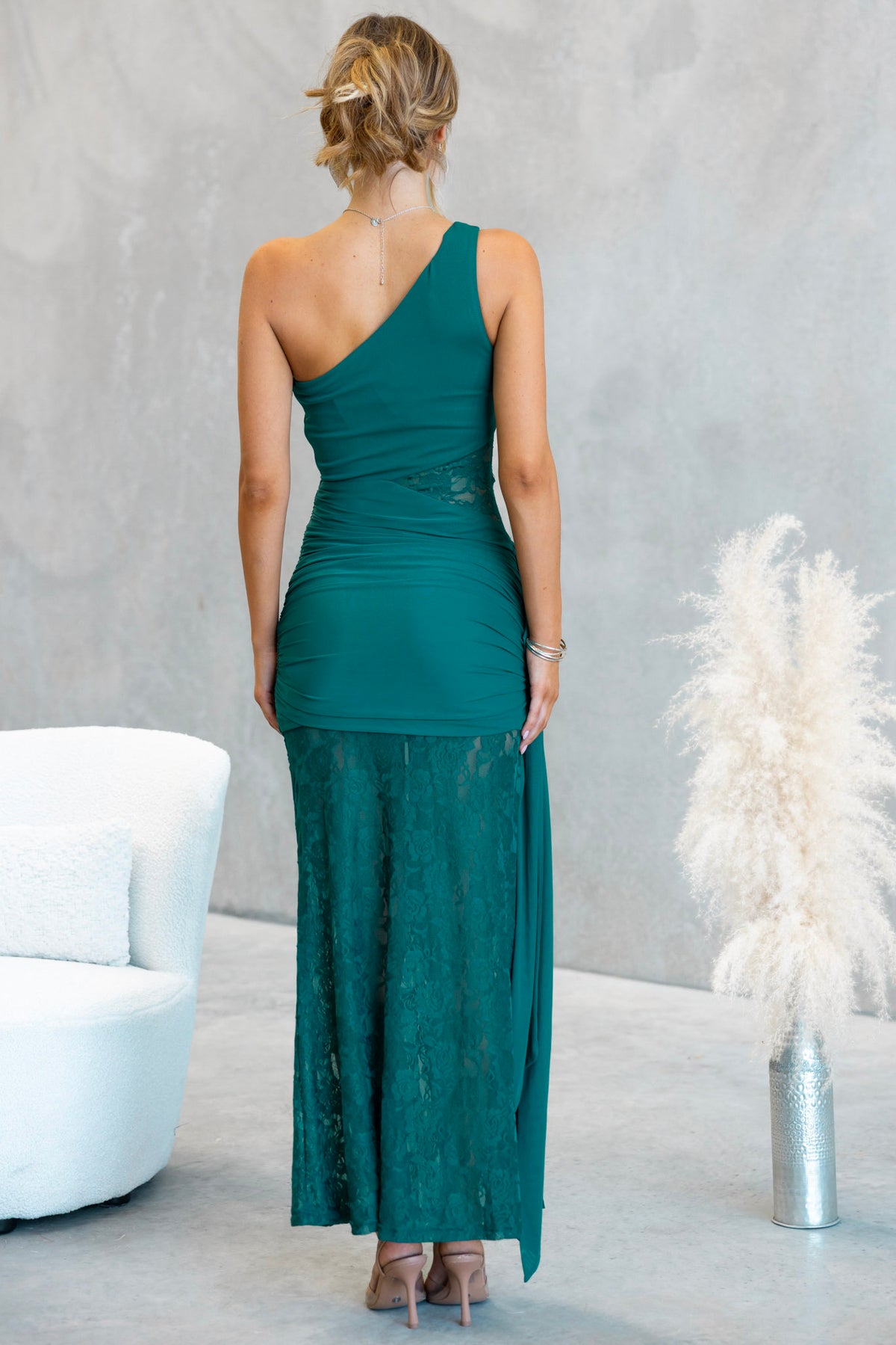 • One-shoulder neckline