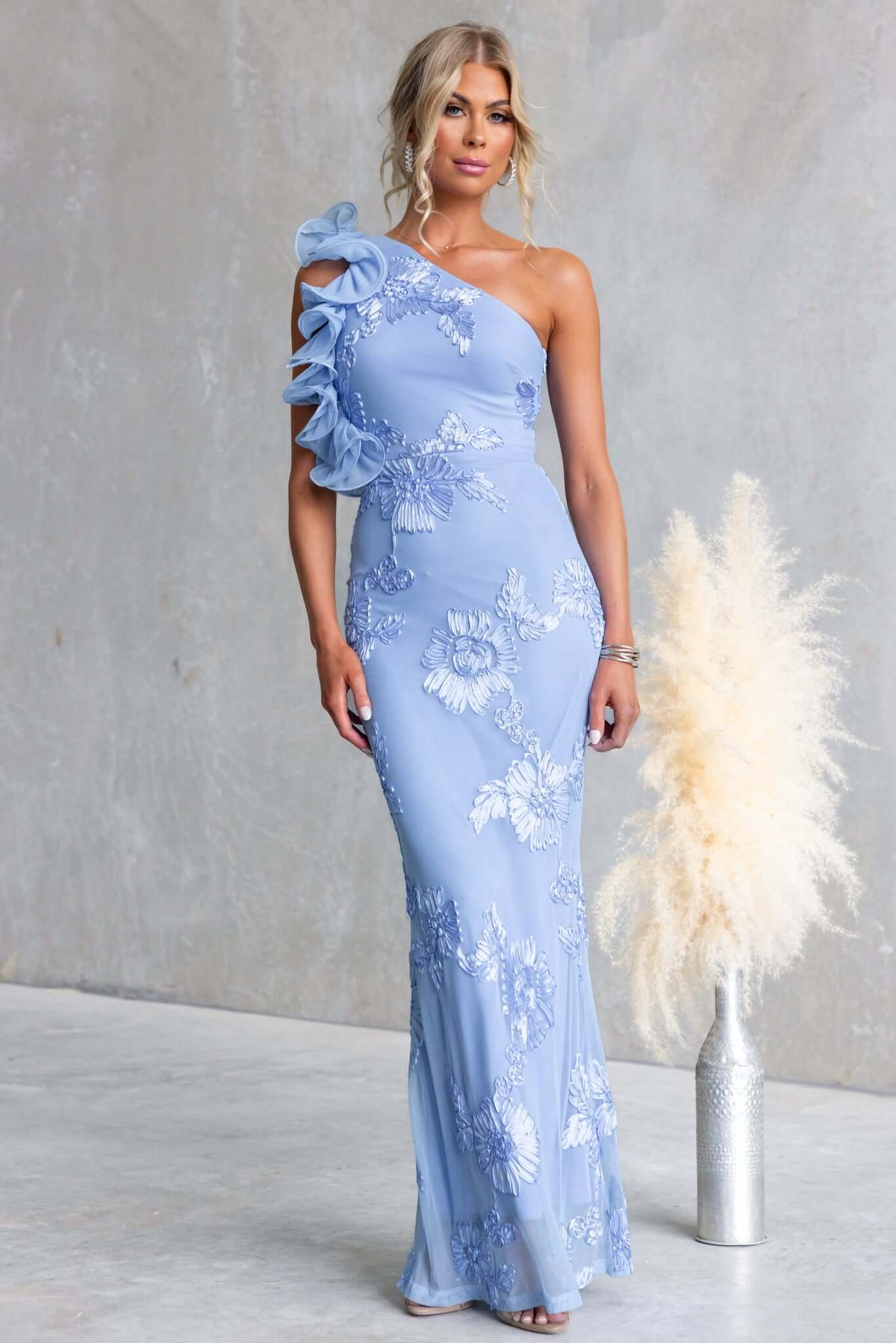 • One-shoulder neckline