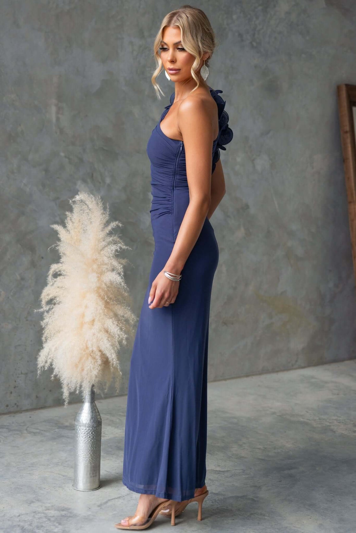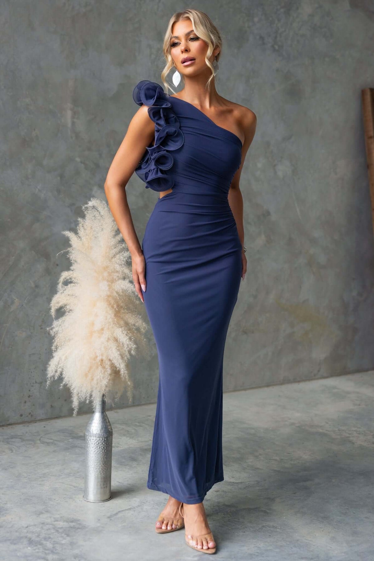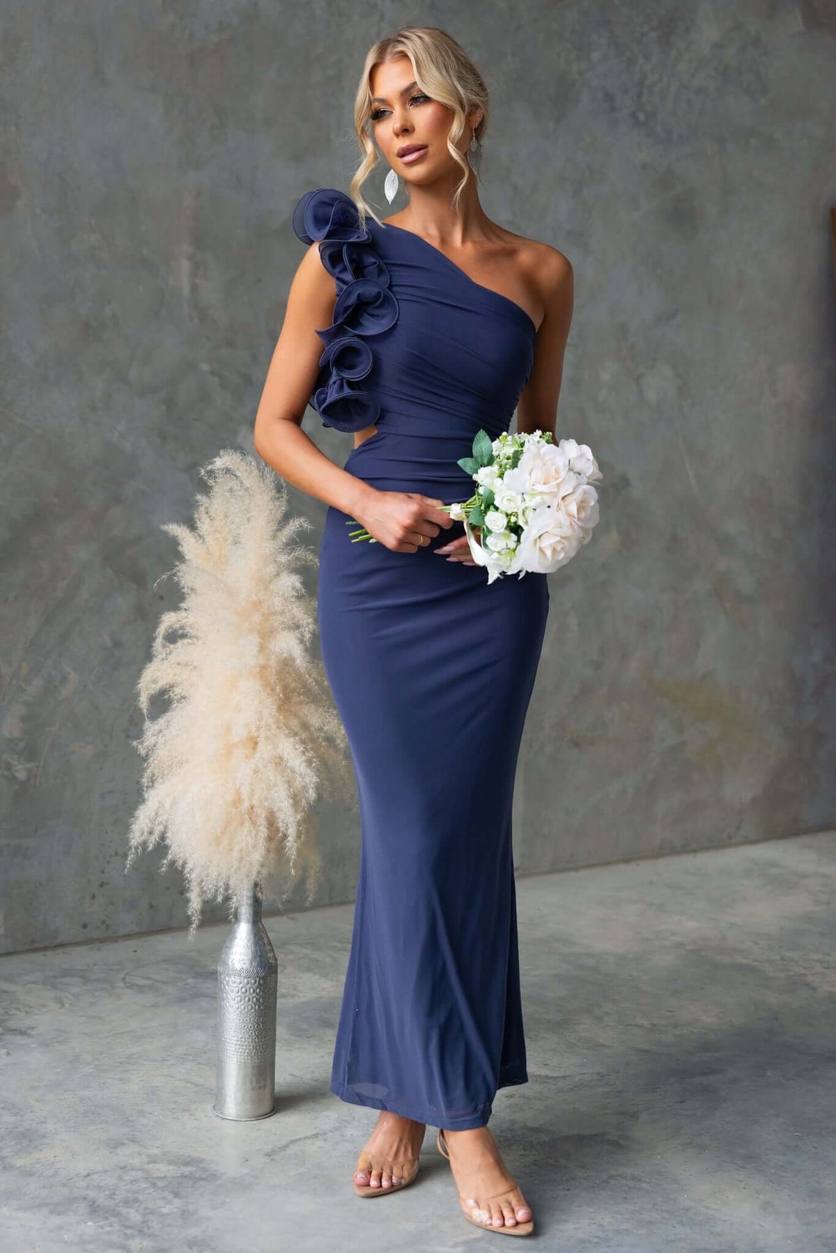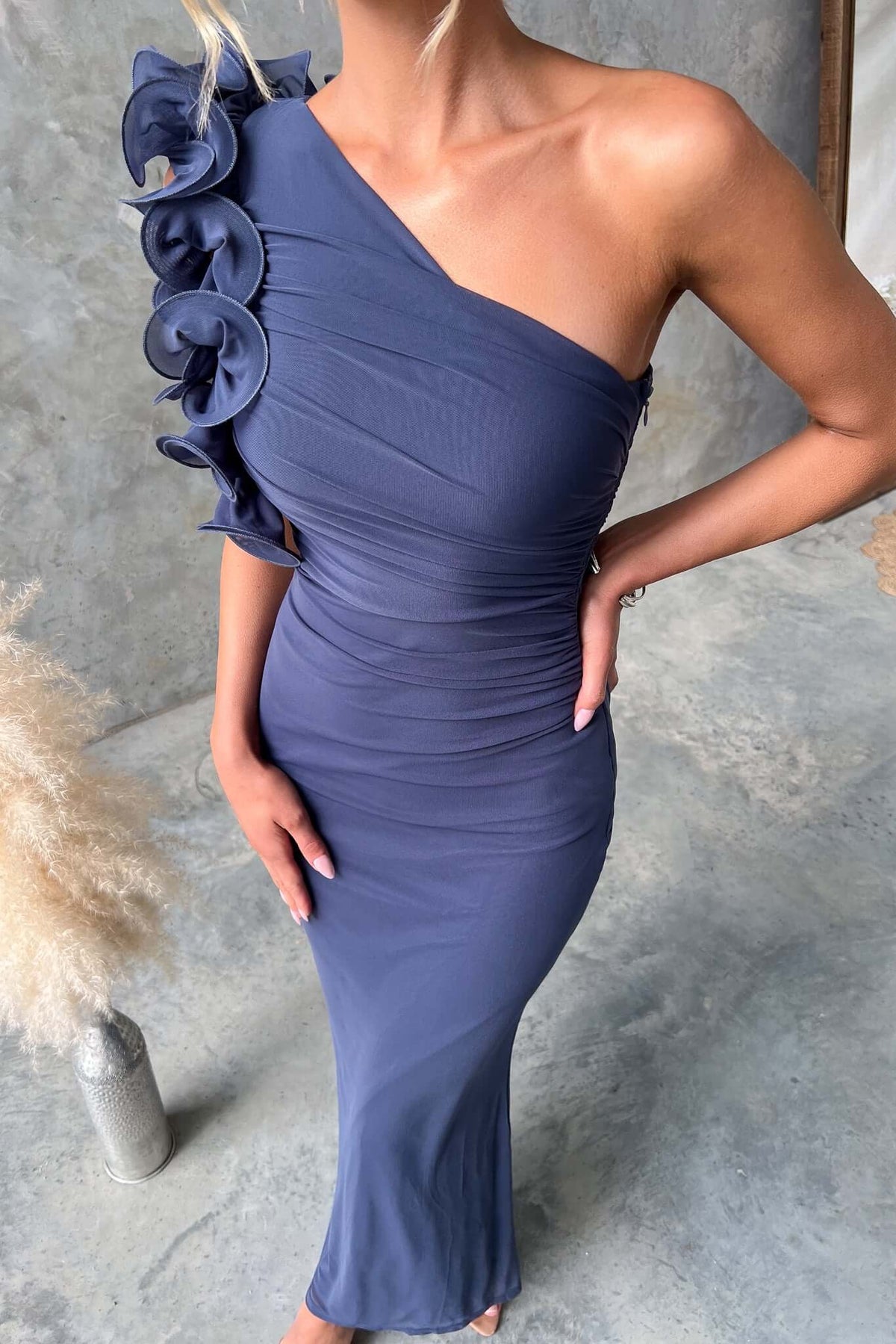 • One-shoulder neckline